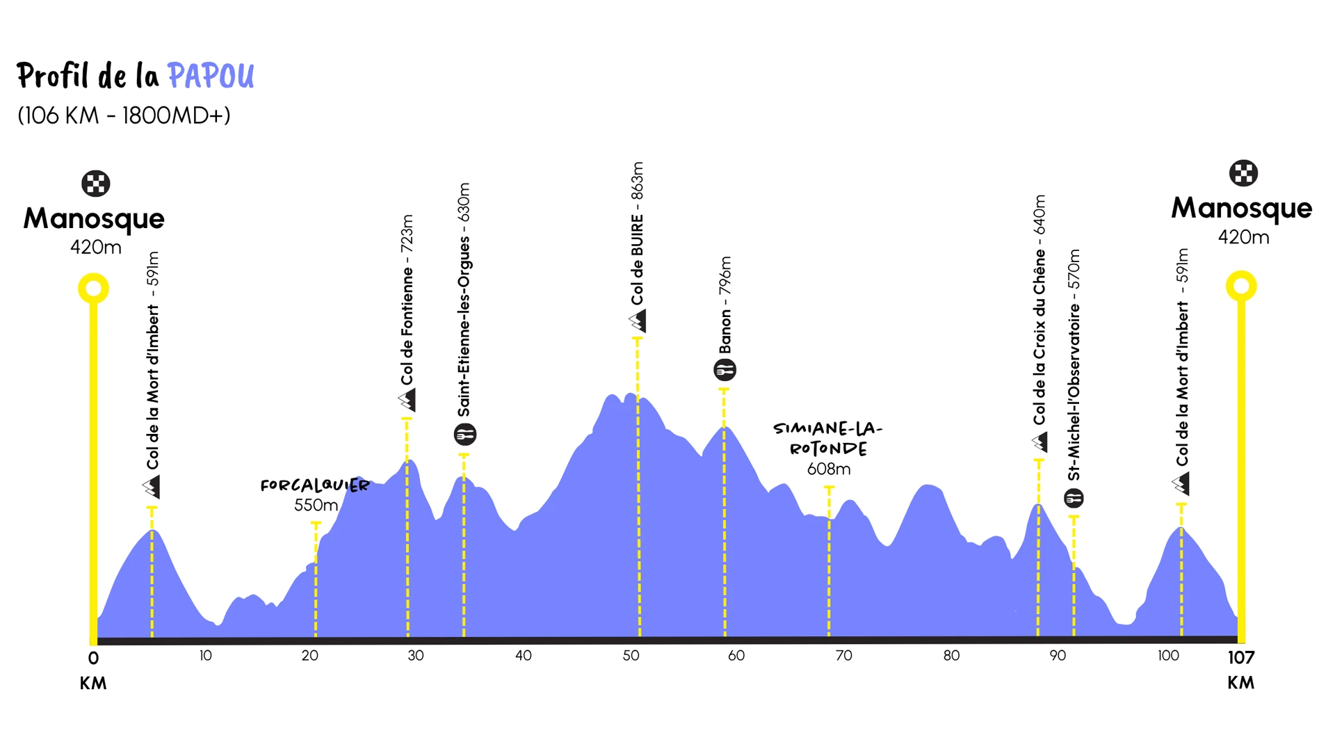 Afin de satisfaire encore plus de participants, nous avons repensé nos tracés : avec La Papou qui s’allonge, il nous semblait important de proposer plus court et plus accessible. Résultat : un itinéraire toujours aussi beau, mais plus abordable, avec une coupure après Ongles permettant de rejoindre directement Revest-des-Brousses.